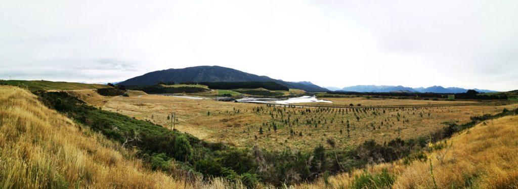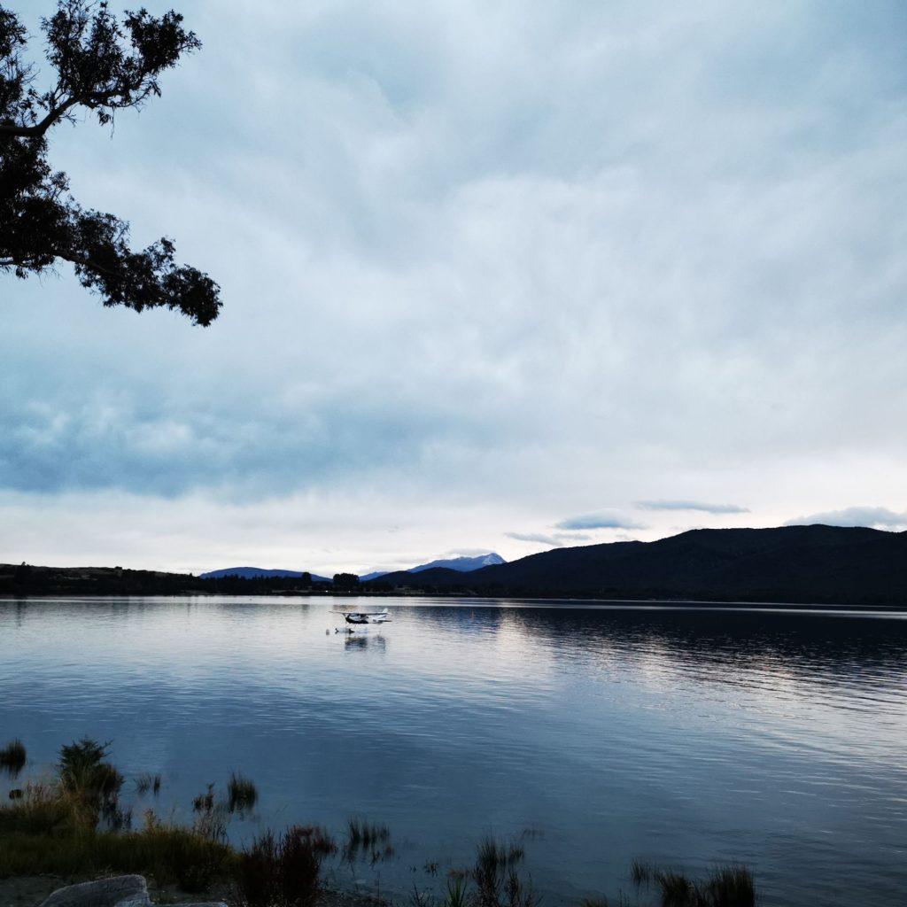 Unser erster Stop war zum Frühstück in Te Anau Down. Auf dem ersten Stück war es noch bewölkt und oben in den Berggipfeln neblig.